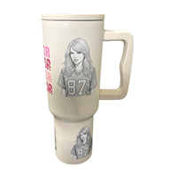 El termo de acero inoxidable Macarena Brand color blanco mate Taylor Swift 1.2 litros está diseñado para combinar funcionalidad y estilo en un solo accesorio. Su gran capacidad permite transportar la cantidad adecuada de bebida, mientras que el acero inoxidable garantiza durabilidad y óptima conservación de la temperatura. La tapa de rosca asegura un cierre hermético y la agarradera de silicona facilita su transporte, convirtiéndolo en un accesorio práctico y seguro. El diseño Taylor Swift aporta un toque único y elegante, ideal para los seguidores de la cantante, añadiendo personalidad y estilo a tu rutina diaria.